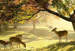 Japan's natural wonders paint a diverse and breathtaking canvas. The iconic Mount Fuji can be viewed through various lenses. In autumn, marvel at the pyramidal peak across the crimson kochia bushes of Oishi or meet the charming deer of Nara Park, grazing under the crimson tapestry of cherry, maple and gingko trees.