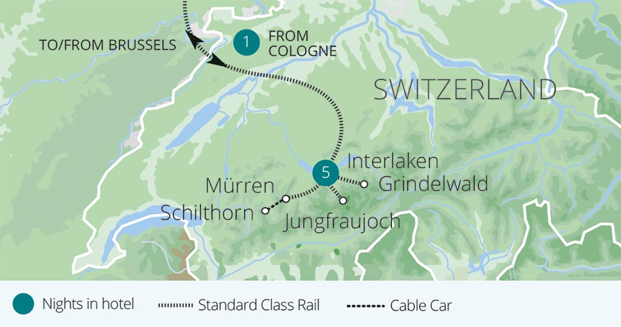 A holiday which combines an iconic rail trip to the 'Top of Europe' and a stay in beautiful Interlaken with the stunning landscapes of a luxurious Rhine Cruise. Starting from our base in Interlaken, nestled between two serene alpine lakes, enjoy the breathtaking views of the Bernese Oberland as we take a scenic journey on the Jungfrau...