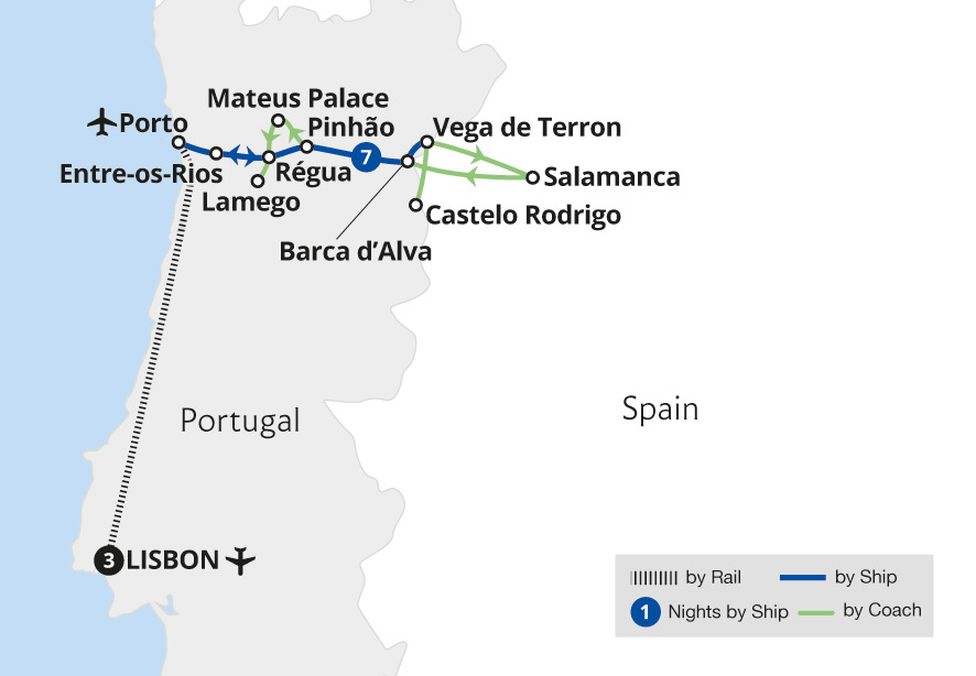 Fly to Lisbon and explore Sintra's palaces on a Portuguese voyage of discovery before embarking on a seven-night Douro cruise. Drifting through golden valleys and past enchanting towns and wine estates, our cruise reveals the best of this serene river, stopping at wonderful ports enroute. We set sail from Porto, tracing the Douro's path. Visit...