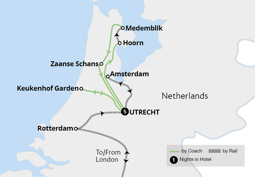 Experience the joys of spring in the Netherlands on this glorious break featuring world-famous gardens, picturesque canals and windmills. Based in the attractive city of Utrecht, our holiday is packed with excursions to enchanting locations, including the stunning Keukenhof Gardens - with its swathes of multi-coloured spring flowers - a guided...