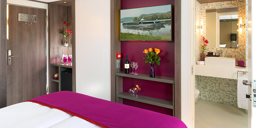 These ensuite cabins are stylish and impressively spacious at 17.5 square metres, with a panoramic window balcony and seating area.