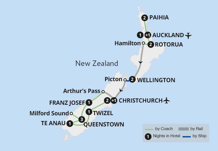 Ahead of us are 18 full days of exploring New Zealand in the southwestern Pacific Ocean, a small island nation which packs a punch in terms of diversity - from multicultural cities and rural towns to untamed wilderness, glacial lakes and spectacular mountains. We can also look forward to journeys on New Zealand's scenic railways, discovering stunning geological sites, and taking part in a variety of Māori cultural experiences.