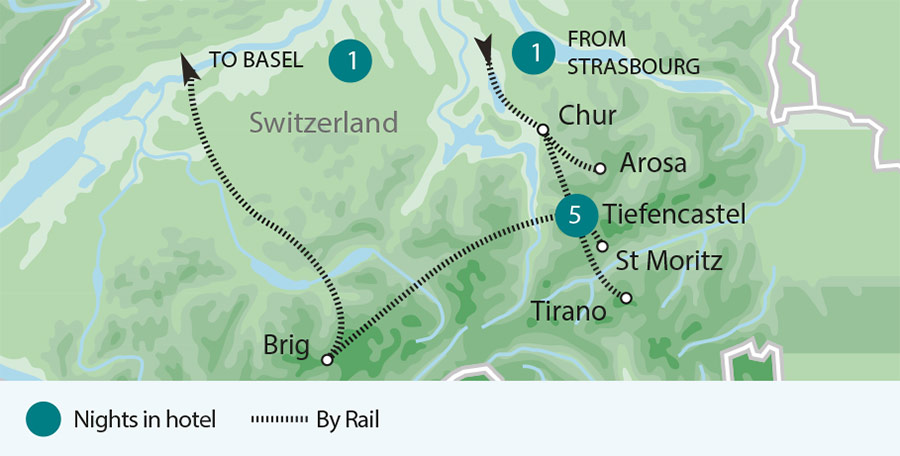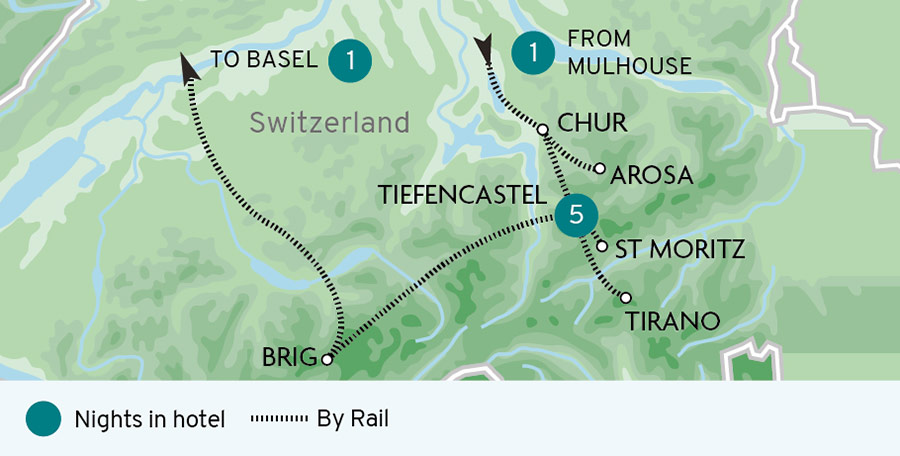 • Spend 8 nights in 4 star hotels, based in the traditional alpine towns of Chur and Brig