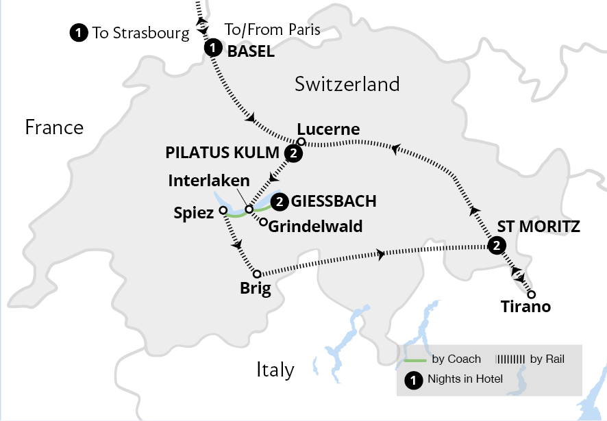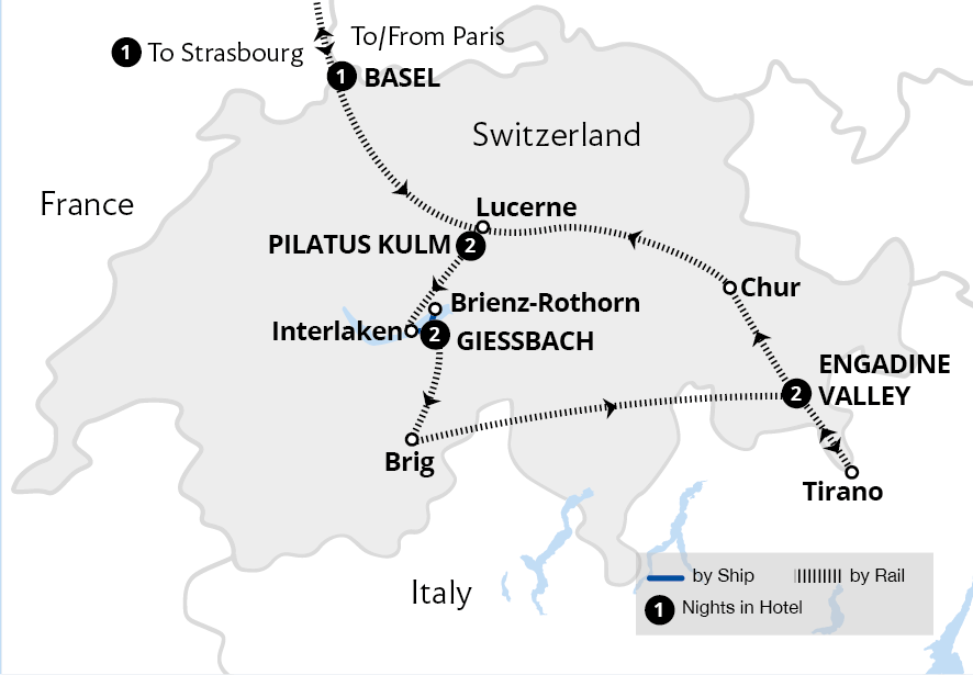 • Stay in 4-Star Swiss hotels, enjoying spectacular lake and mountain views